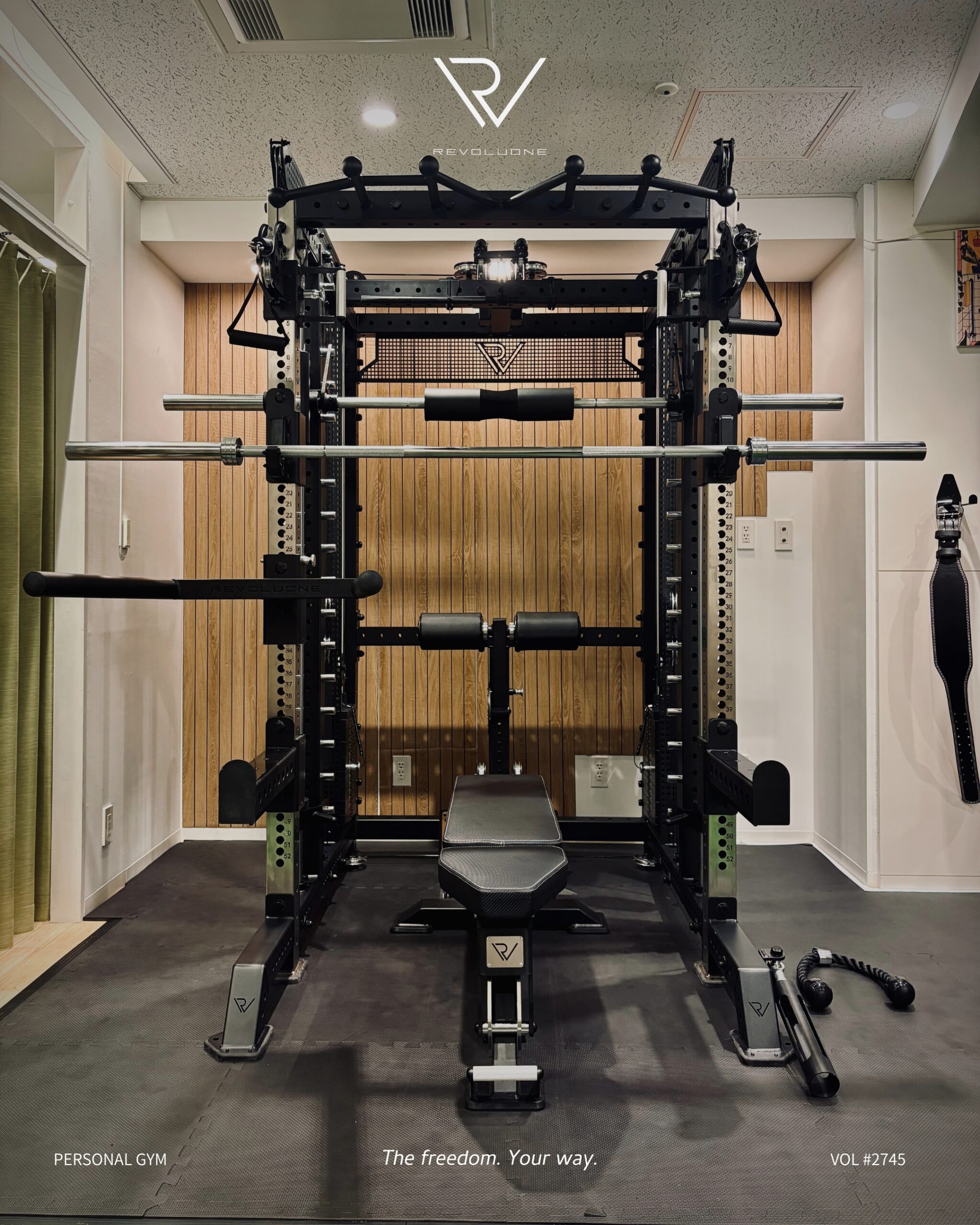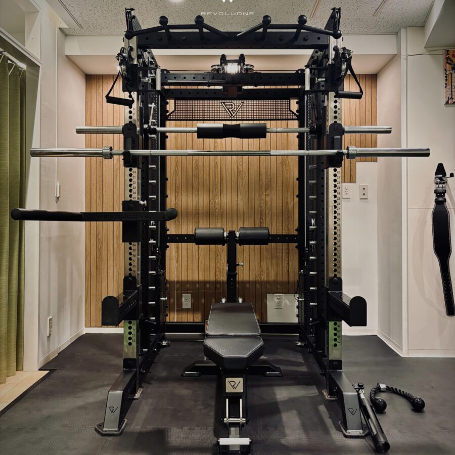 ハーフラックを基軸に、ラットプル・ローイング・スミス・ケーブルを一体化。