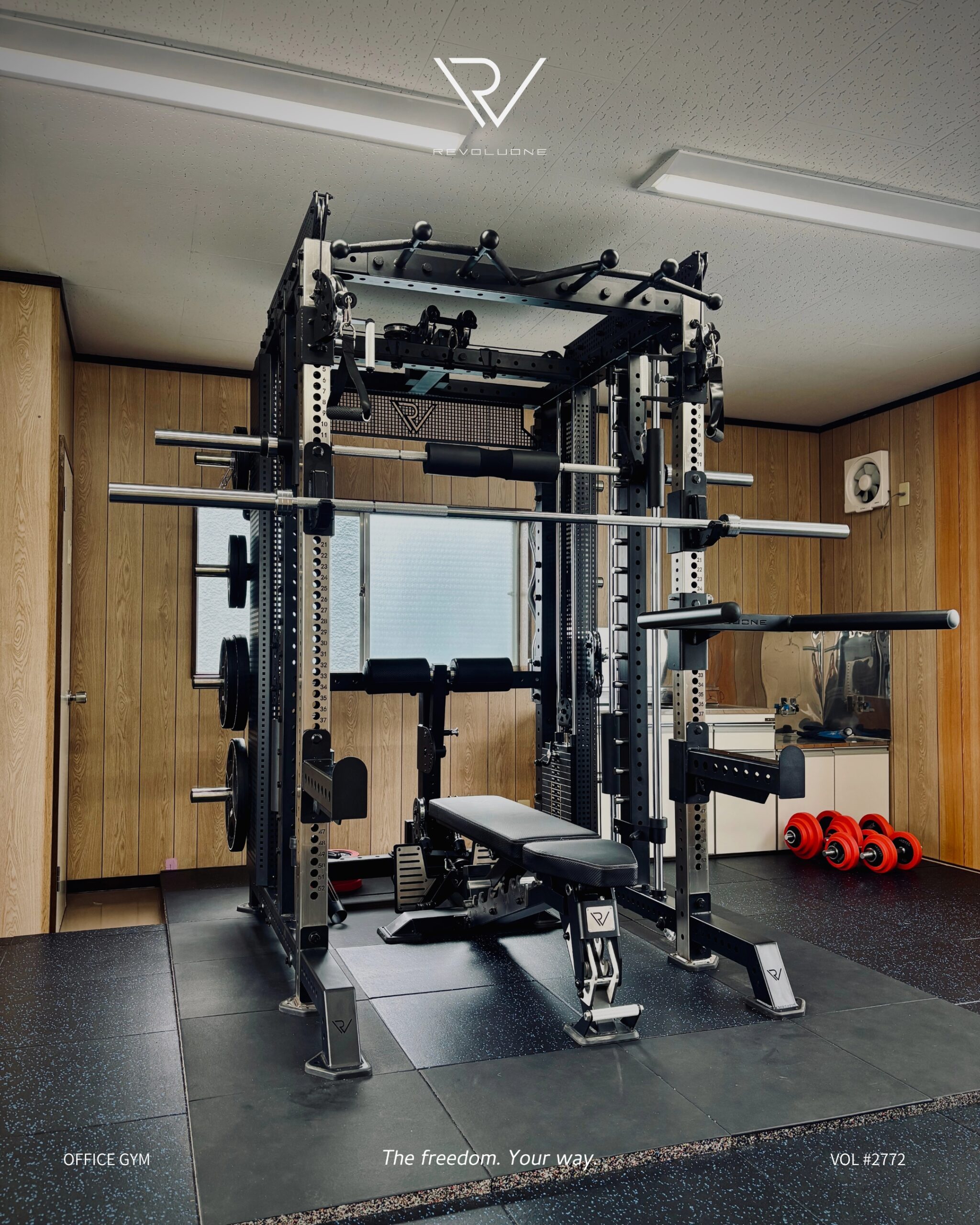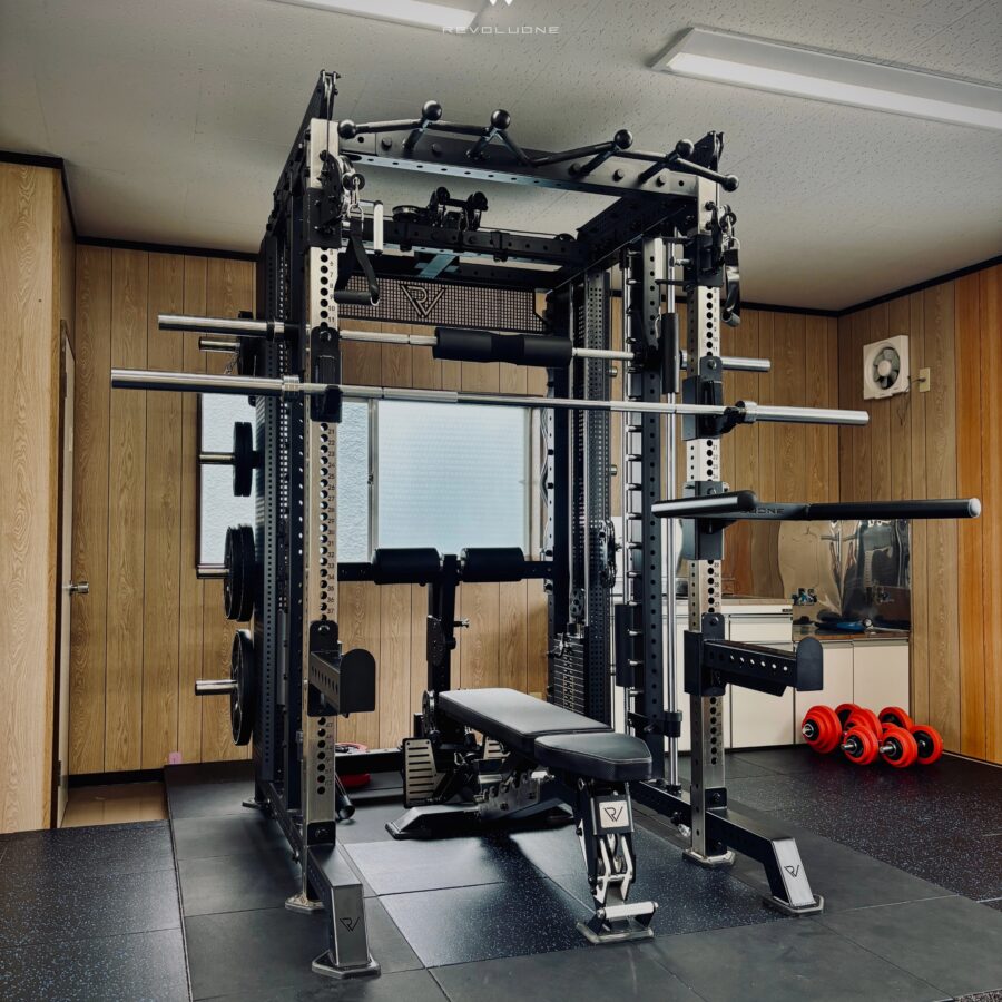 ハーフラックを基軸に、ラットプル・ローイング・スミス・ケーブルを一体化。