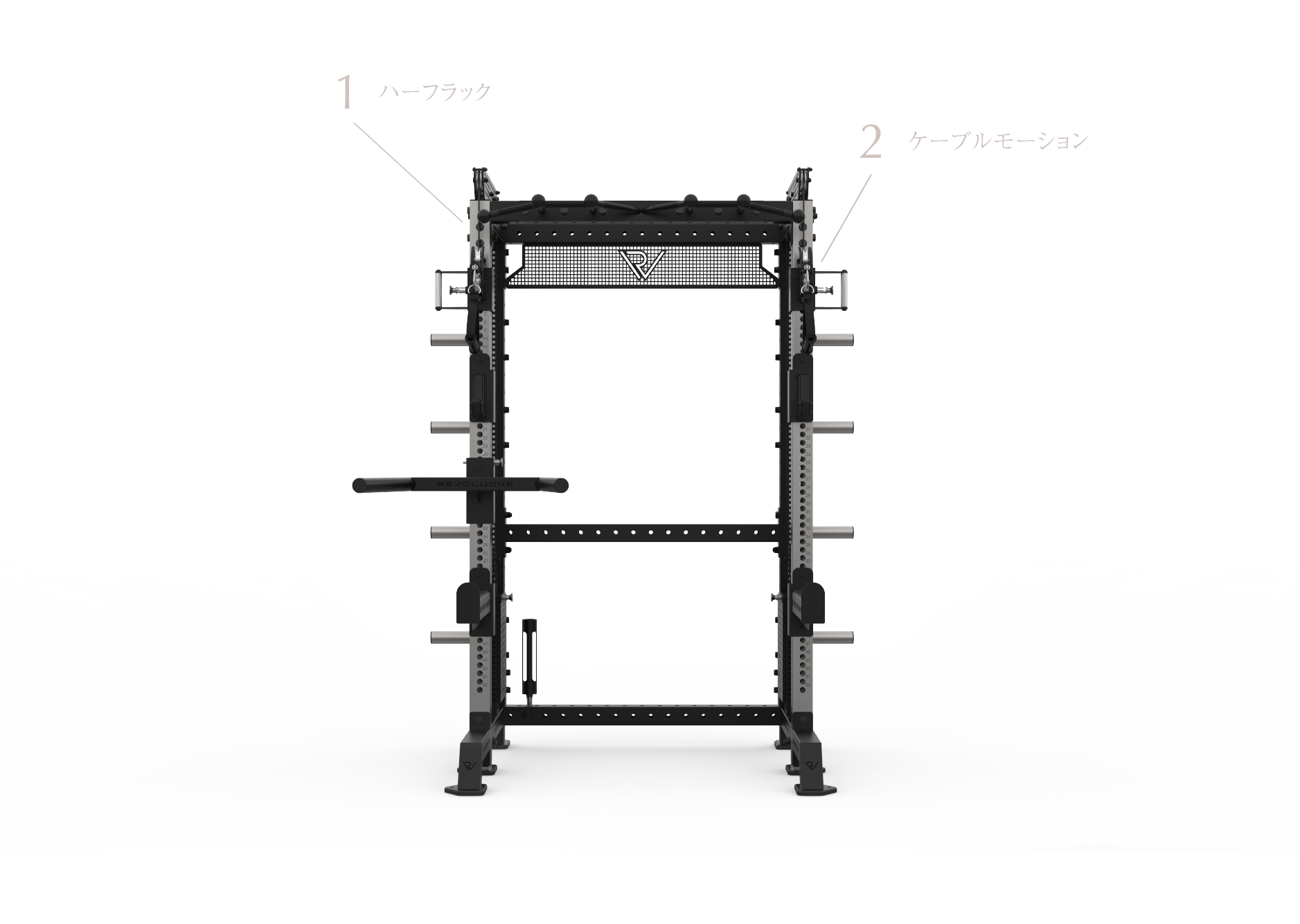 ハーフラックとケーブルモーションを融合し、省スペースながら多彩なケーブルトレーニングを実現。