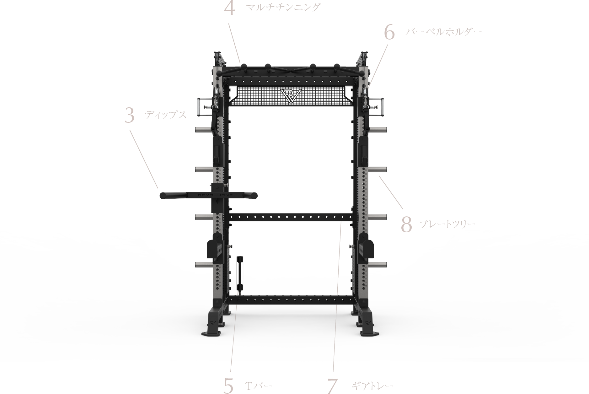 オーバー/アンダー/ニュートラルなど多彩なグリップを搭載。背中・腕・体幹を多角的に強化可能。